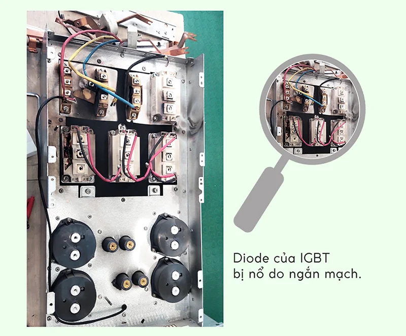 – Tiến hành tháo gỡ biến tần, kiểm tra tất cả các hư hỏng có thể nhìn thấy.