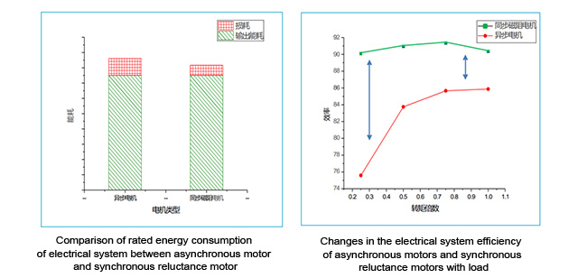 Thống kê thử nghiệm thị trường so sánh động cơ không đồng bộ. Các điều kiện được đánh giá thấp hơn, tổn hao của hệ thống dẫn động động cơ từ trở đồng bộ giảm khoảng 40% và hiệu suất tại điểm danh định tăng lên khoảng 5%. Tỷ lệ tải nhỏ hơn 50% và hiệu quả tiết kiệm năng lượng đặc biệt rõ ràng.